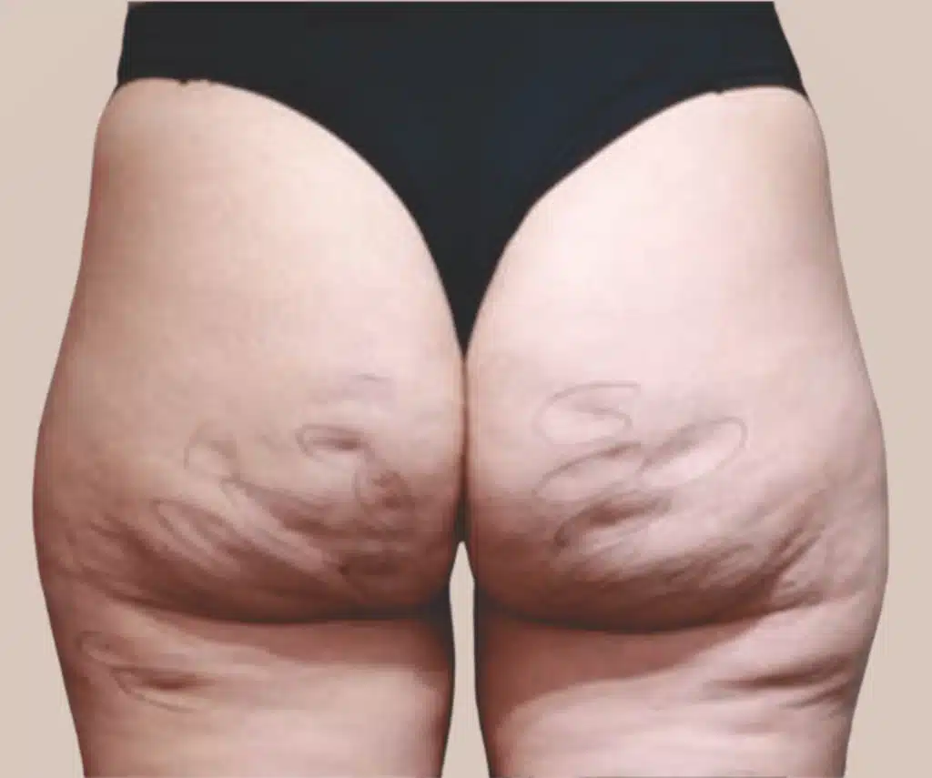 Antes de iniciar, são realizadas as marcações dos principais pontos acometidos, com a paciente em pé, para que seja possível identificar com precisão os focos de celulite